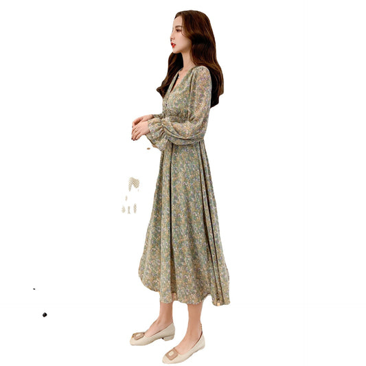 Chic Niche Temperament Lapel Gloss Single-Breasted Design Waist Long Sleeves Pleated Hip Dress Women