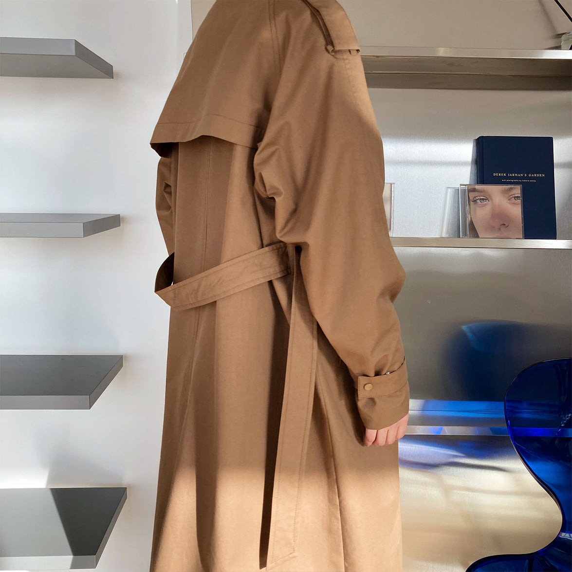 Temperament British Mid Length Over The Knee Windbreaker Women Loose Korean Style Jacket